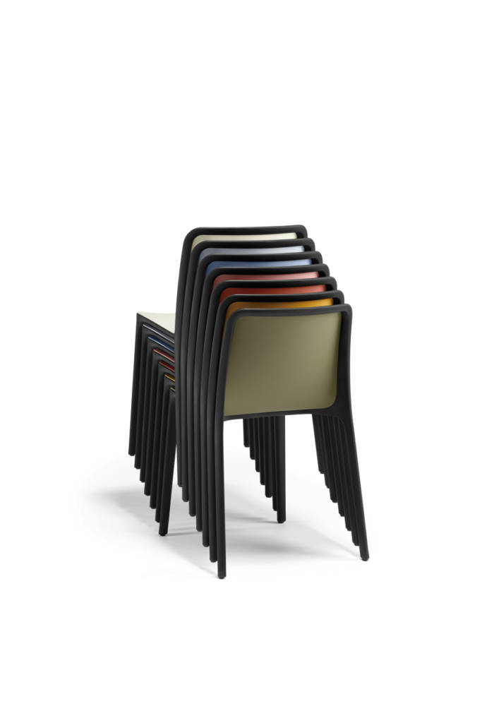Bika presenta una estética suave basada en secciones redondeadas, con una estructura aparentemente sencilla que encierra una gran innovación en su diseño ya que está compuesta por carcasa de polipropileno y estructura de poliamida, con una atractiva gama de colores.