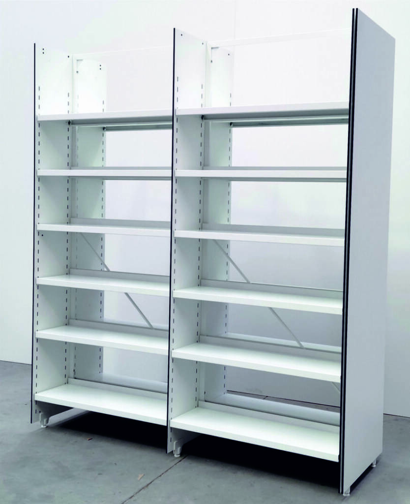doble cremallera de taladros que permite la graduación en altura de los estantes metálicos